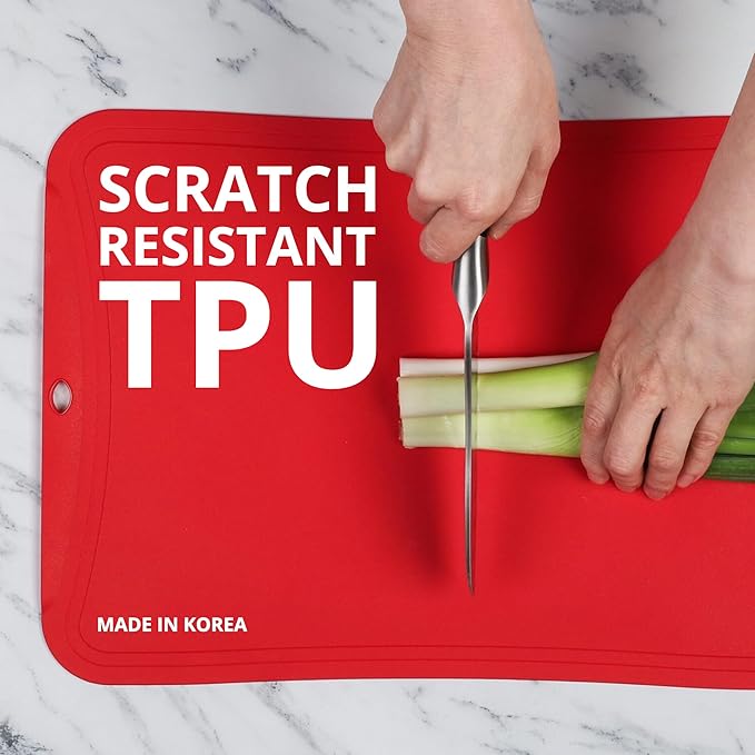 Blue Ginkgo TPU Cutting Mat [Medium] – Korean-Made Flexible, Knife-Friendly, Durable Kitchen Cutting Board (Red)