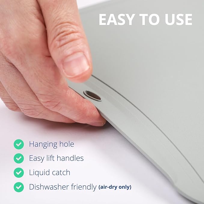 - SPACE-SAVING DESIGN – Thin, stackable mats are easy to store in drawers or hang for convenience. Lightweight and portable, they’re perfect for any sized kitchen.