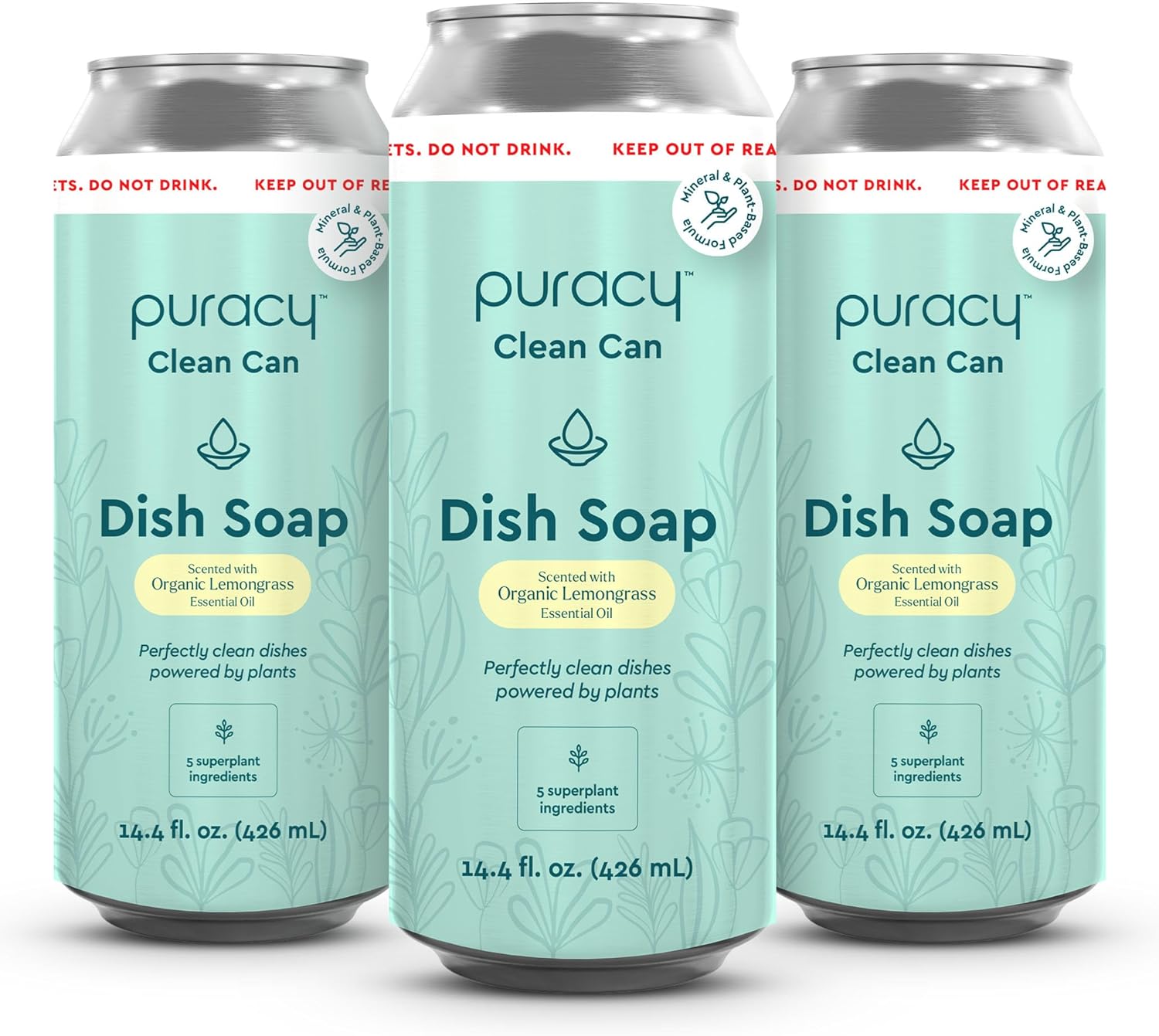 - Infinitely Recyclable - Puracy dish soap concentrate now comes in 3-pack refills for our Clean Can. Our durable bottle is made to last, helping you cut back on single-use plastics. It's a sweet and easy way to keep your home tidy while being kind to the world.