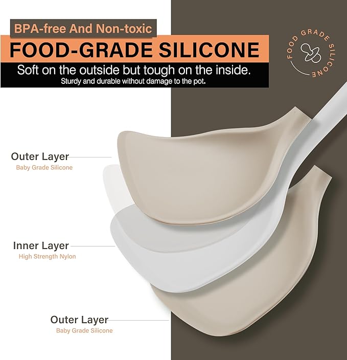 - HOLIDAY GIFT CHOICE: Our large utility silicone spoons for cooking has a stylish look and neutral color that matches many kitchen decoration styles. This silicone cooking utensils set for cooking and serving is a thoughtful gift for home cooks, cooking enthusiasts and cooking beginners