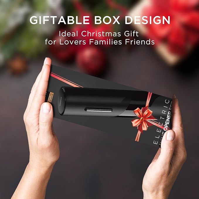 - ELEGANTLY DESIGNED PRESENT SET: The BABONIR Electric Wine Opener Present Set is thoughtfully designed to impress. It includes an exquisite greeting card, making it a perfect present for wine lovers on occasions like New Year, Valentine's Day, Anniversaries, Christmas, Thanksgiving, Mother's Day, Father's Day, Graduations, Birthdays, and more.