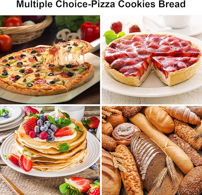 - Package includes 1-pack pizza stone; Material: All natural Cordierite; Size: 13.2" x 13.2" x 0.4". Solid piece that cooks evenly. Can be used in home kitchens, family gatherings and parties. Can be used to bake bread, pizza, pies, cookies, and pastries, etc.