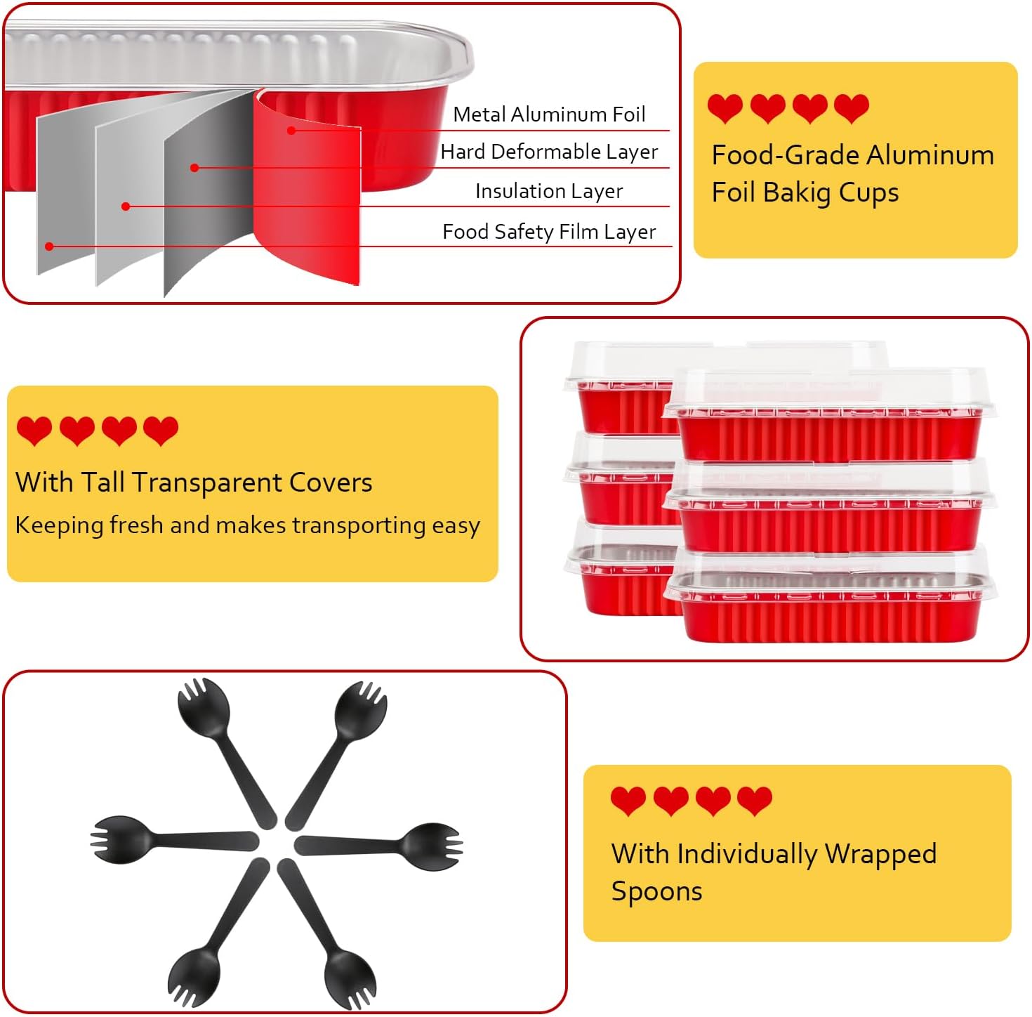 LNYZQUS Disposable Mini Cake Pans with Lids 100 Pack, 6.8oz Rectangle Mini Loaf Pan Baking Cups Muffin Tin,Aluminum Foil Cupcake Baking Tins Containers for Christmas New Year-Red