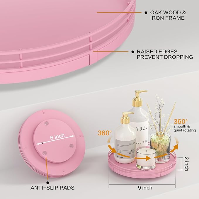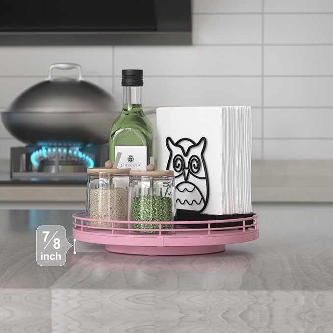 - ๐ง๐ต๐ผ๐๐ด๐ต๐๐ณ๐๐น ๐๐ฒ๐๐ถ๐ด๐ป: The turntable tray features a smooth and silent 360ยฐrotation; Bottom slip-resistant pads for stability and protect your countertop from scratches; Raised edges on each organizer tray to keep items from falling out; Easy to use, no installation required