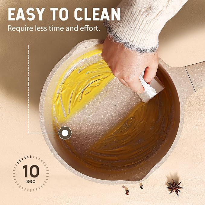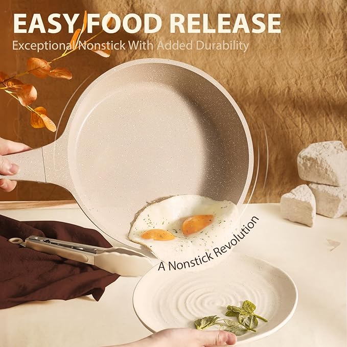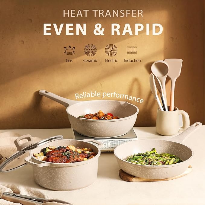 - Effortless Nonstick Cooking: Easy food release with silky smooth nonstick performance after every meal. Induction-ready: Heavy-gauge base makes this kitchen pots and pans set safe for all stovetops and sturdy enough for use.