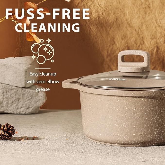 CAROTE Pots and Pans Set Non Stick, 16Pcs Kitchen Cookware Set, Stackable Induction Cookware, Pot and Pan set, Pans for Cooking, Taupe Granite,Pots and Pans Set Non Stick,