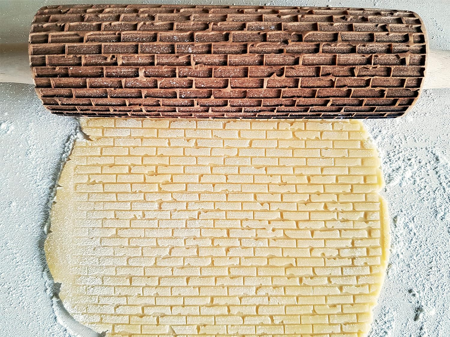 BRICKS Embossing Rolling Pin. Laser Engraved Dough Roller with Wall Pattern for Embossed Cookies or Pottery by Algis Crafts