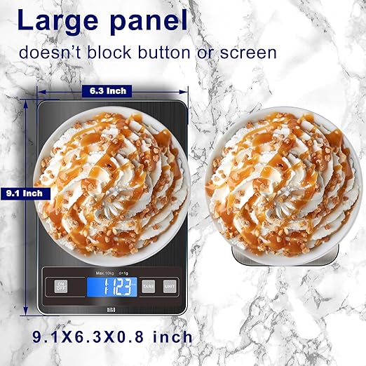 - Equipped with four high-precision load sensor, hito food kitchen scale gives accurate weight, with 0.1 oz/1g resolution, and gives quick response to change. The scale is useful in baking, meal prep, baby food prep, weighing objects tiny or bulky.