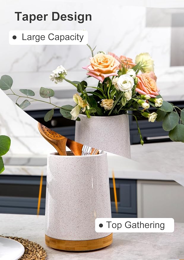 - -MULTIPLE FUNCTIONS: This ceramic utensil holder can serve as many ways, not just for storing kitchen utensils, but also for holding brushes, flowers, plants, and even can be used to cool wine.