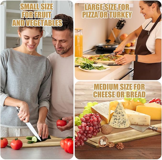 - Wide Application: our cutting boards are large and big enough to handle large roasts, such as turkey and ham, etc., ideal for cutting vegetables, bread, meat, cheese or other foods, they can also be ideal gifts for housewarming parties choose