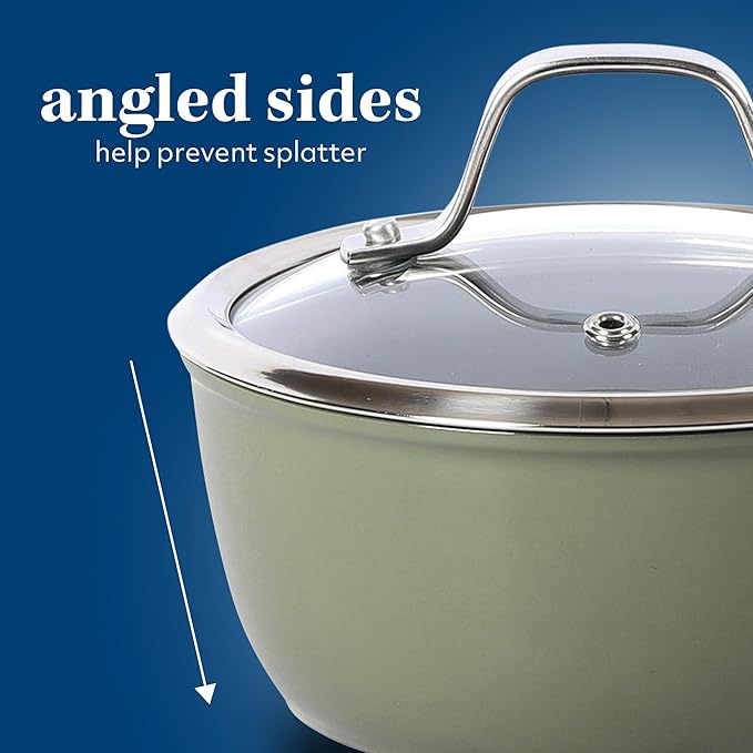 Sur La Table Kitchen Essentials 10 Piece PFA Free Non-Toxic Titanium Ceramic Nonstick Interior Forged Aluminum Cookware Pots and Pans Set - Green - Induction Compatible