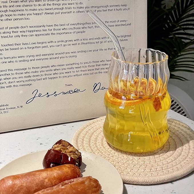 - Vintage Design: Inspired by vintage style combined with modern aesthetics, the wave and tumbler striped shape design adds an elegant touch to any table setting. These creative glass cups not only look beautiful but also provide a comfortable grip to prevent slips