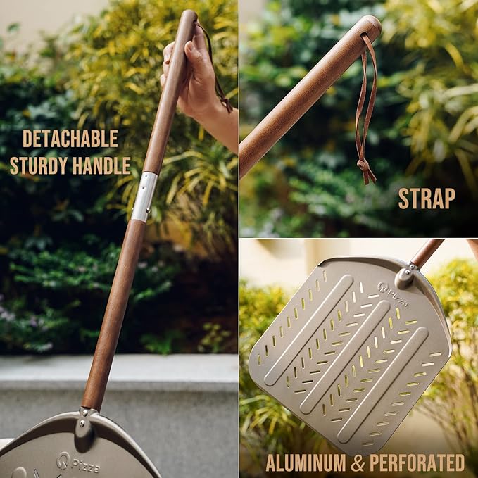 - 【Alluminum Non-stick Pizza Peel】: This pizza peel is designed to last 5 to 8 times longer than regular pizza peels, thanks to its hard film anodizing that protects its surface from oxidation. It's not only resistant to high temperatures but also wear-resistant, making it a durable and reliable choice for professional chefs and new learners alike.