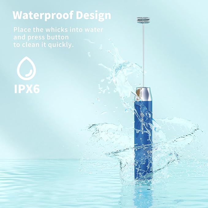 - One-button Operated Design: One press to start the whisking and another press to stop frothing. Just place the LunaFro handheld milk frother’s whisk into the container with milk or other liquid food, then press the button to make milk foam, and press the button again to stop working. It’s effortless to clean. Only put the mixing head into water or soapy water, and then press the button to let eddy water current clean it completely.