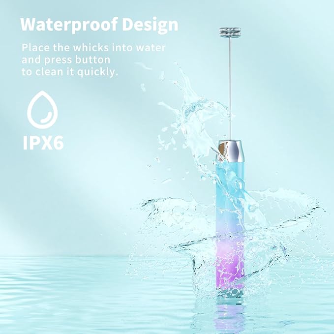 - One-button Operated Design: One press to start the whisking and another press to stop frothing. Just place the LunaFro handheld milk frother’s whisk into the container with milk or other liquid food, then press the button to make milk foam, and press the button again to stop working. It’s effortless to clean. Only put the mixing head into water or soapy water, and then press the button to let eddy water current clean it completely.