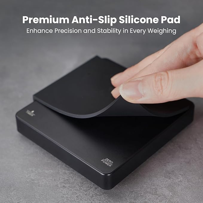 - 【Minimalist Design & Quality Materials】Maestri House digital coffee scale is made of high heat-resistant ABS with an invisible LED display and hidden touch control keys. The surface without gaps is more elegant, waterproof, and easy to clean. It is waterproof, non-slip, scratch-resistant, and heat-insulating, with removable silicone pads to protect the surface.