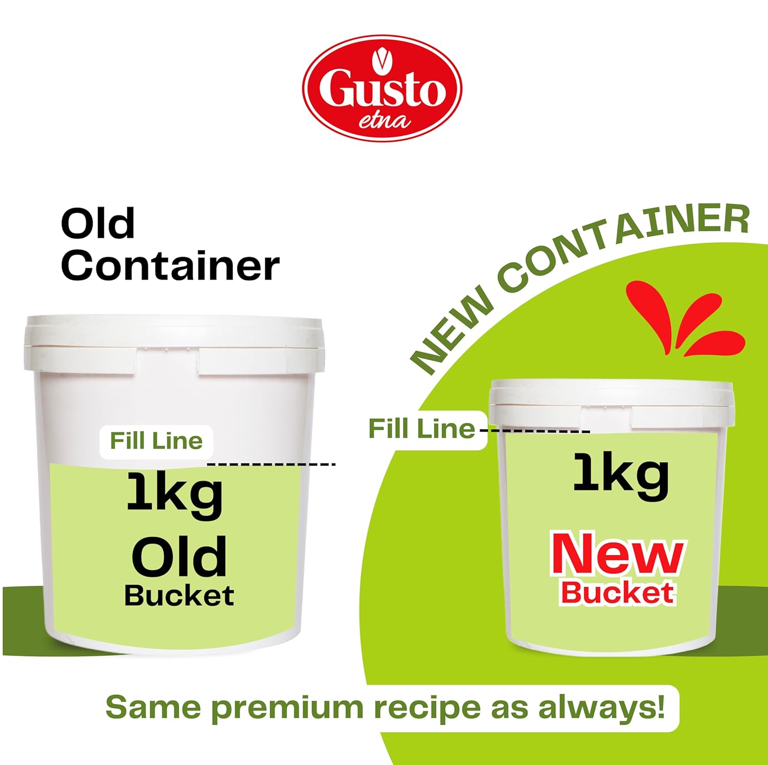 GUSTO ETNA Pistachio Cream, Sweet Nut Butter, Bulk Tub, Rich & Nutty filling for Knafeh Pistachio Chocolate Bars, Sweet Pistachios Spread, Pistachios Paste & more Product of Sicily, Italy, 2.2 LB (1 Kg)