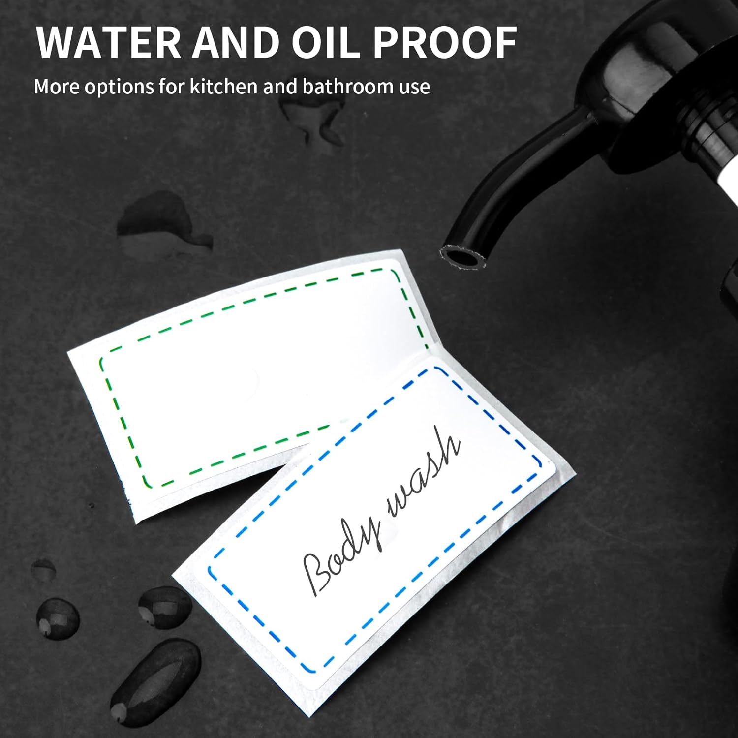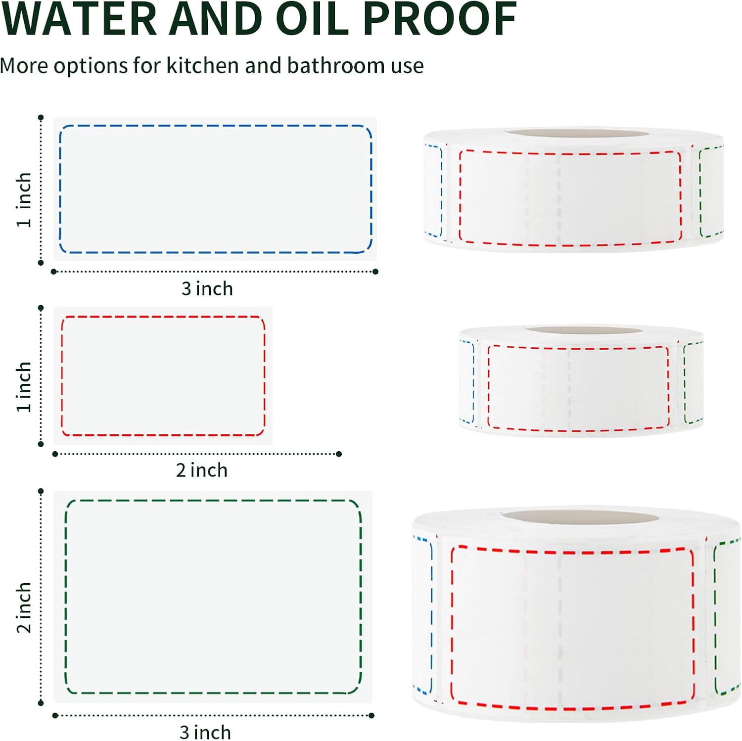 - Special Paper - Waterproof / Oil-Proof and Fade Resistant and Removable: Made from waterproof and oil-proof materials, these labels are ideal for kitchen use, daycare labels, or bottle labels daycare reusable. They withstand moisture, oils, and even freezer conditions. Stick to plastic, paper, metal, and glass and remove easily. Super useful, write on them with marker pen, stick them on containers, take them off, and stick them back on new containers.