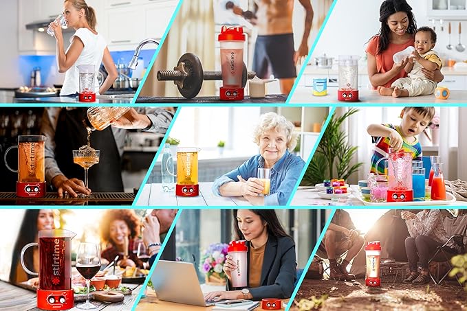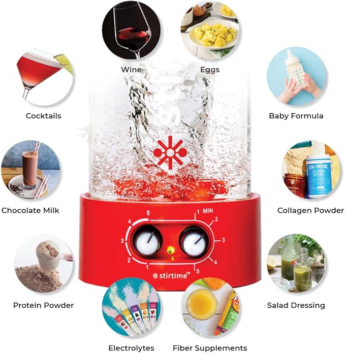 - MULTI-PURPOSE USE: Stirtime mixes the toughest protein powders, fiber supplements, electrolytes, collagen, batters, eggs, baby food formula, and any powders on the market. Stirs cocktails, aerates wine in minutes and even eliminates the smell of chlorine in tap water. Versatile for any kitchen and perfect for traveling and outdoors.