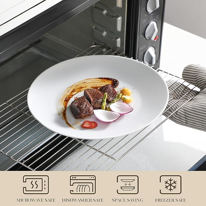 - 【UPGRADED QUALITY & KEEP HEALTHY】A type of premium LEAD-FREE, CADMIUM FREE and NON- TOXIC ceramic which are anti-chip, scratch resistant, bright surface, easy to clean and maintain, longer service life. Gourmet Porcelain is fired at high temperatures, which gives it greater hardness and durability. It can withstand high temperatures without easily cracking or deforming.