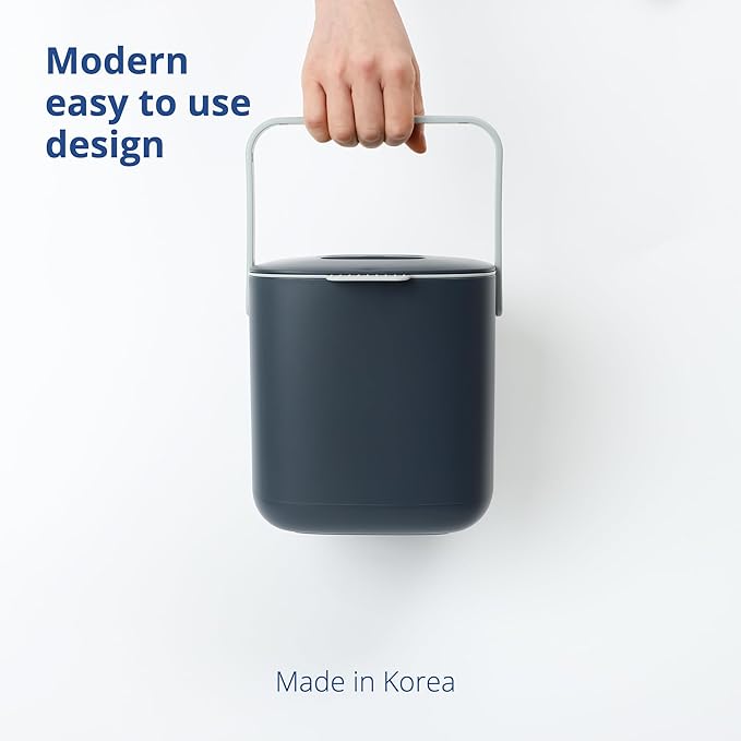 - EASY CLEANING - Made in South Korea from easy-to-clean dishwasher safe plastic, the inside of this indoor compost bin is smooth to prevent food waste from sticking, and the inner basket is removable, making cleaning a breeze. Whether you hand wash this food scrap bin or place it in the dishwasher, a clean compost pail is just a few minutes away.