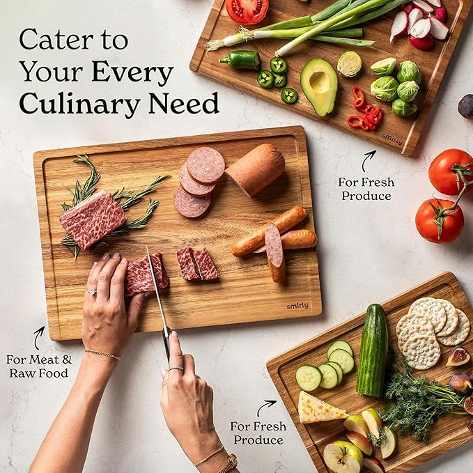 SMIRLY Wood Cutting Boards For Kitchen Meal Prep & Serving, Bamboo Cutting Board Set, Charcuterie Chopping Boards and Wooden Cutting Boards for Kitchen