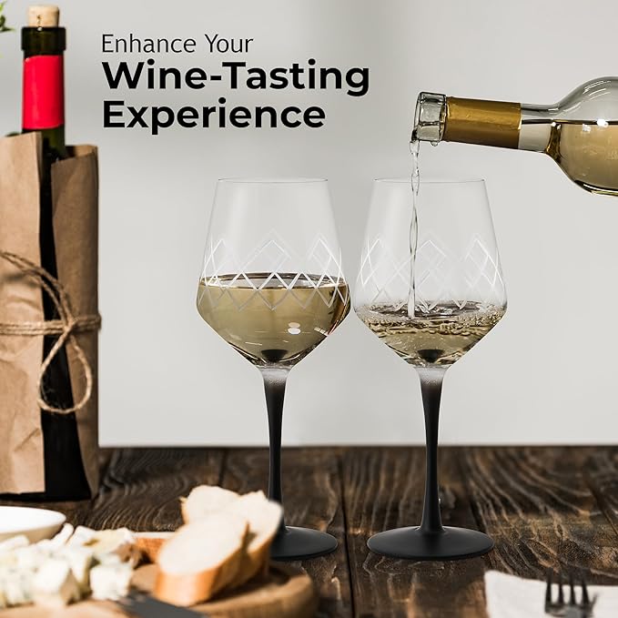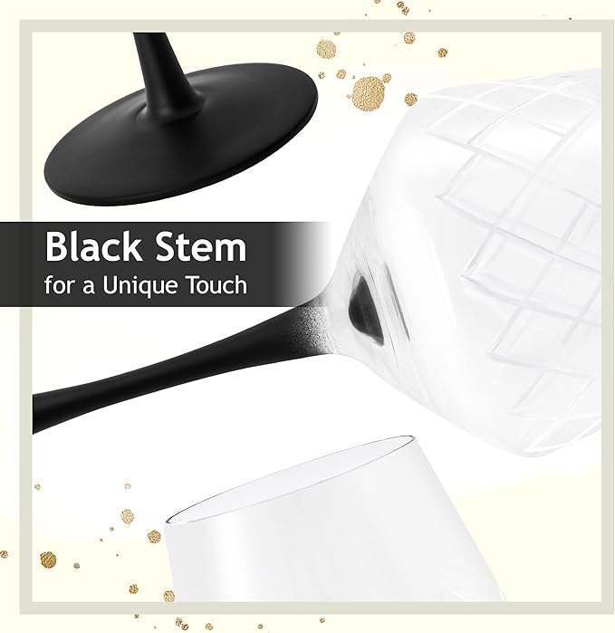 - šššššš šššššš - Meticulously crafted with elegance in mind, this set of four elegant and cute wine glasses showcases a crystal carved design with a black stem. These crystal glasses are guaranteed to make a lasting impression on anyone who beholds them.