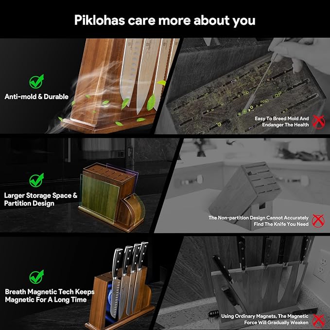 - Quality Manufacturing, Rust And Corrosion Resistant: Piklohas cutting knife is German top grade X50CrMoV15 high carbon steel with precision quenching and vacuum cold nitrogen treatment. It dramatically enhances the characteristics of corrosion resistance, rust prevention, and toughness, which can withstand high-frequency use.