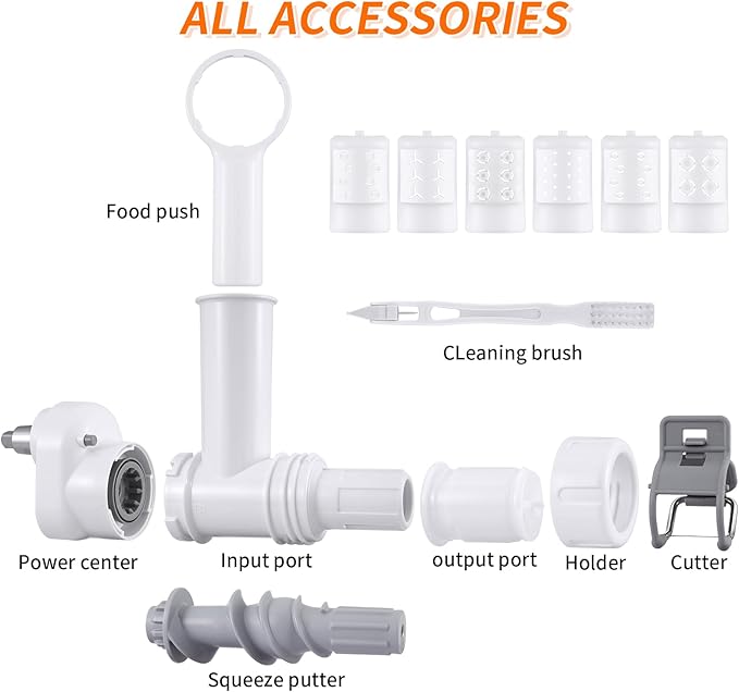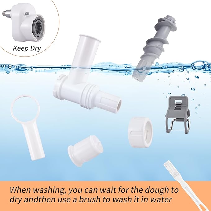 - 🍜【Easy to Clean】The pasta press attachments are removable and there is also a cleaning brush for removing dirt from the machine. The components are all dishwasher safe and it is recommended that they are thoroughly rinsed and dried afterwards. Note: Keep the power centre dry.