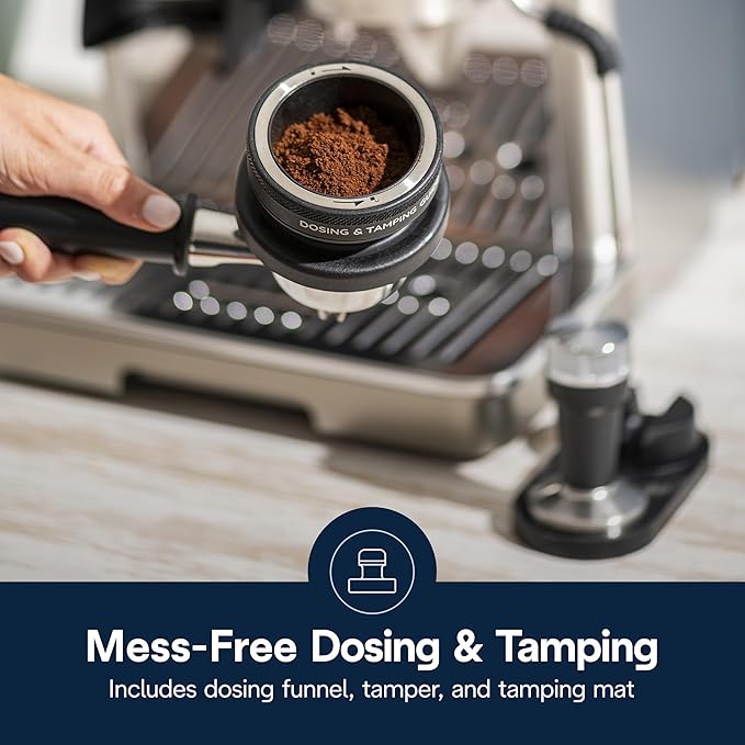 - BARISTA KIT. The professional barista toolkit makes your experience mess-free and easier than ever with the dosing and tamping guide and tamping mat. With these tools, applying the right pressure on each grind is easier than ever for consistent extraction results, every time.