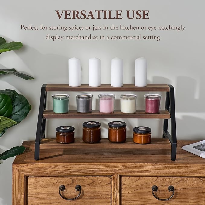 - 3-Tier Stair Step Design for Easy Access & Display Features a cascading tiered structure to neatly organize 12-15 wine/liquor bottles (4-6 per tier) or barware like glasses and decanters. Raised anti-slip rubber feet ensure stability on countertops, bar shelves, or pantry cabinets—no wobbling or scratches.
