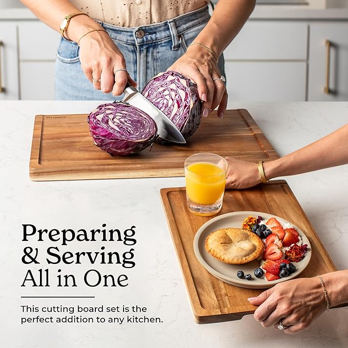 - Simplify Your Kitchen Routine - Enhance your cooking with our acacia wood cutting board set, designed for convenience and packed with practical features to streamline your kitchen tasks.