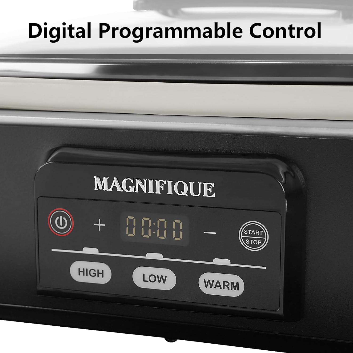 MAGNIFIQUE Small 4 Quart Casserole Programmable Slow Cooker with Ceramic Baking Dish - Perfect Kitchen Small Appliance for Family Dinners, Oven Safe and Durable Bakeware for Lasagna, Roasts
