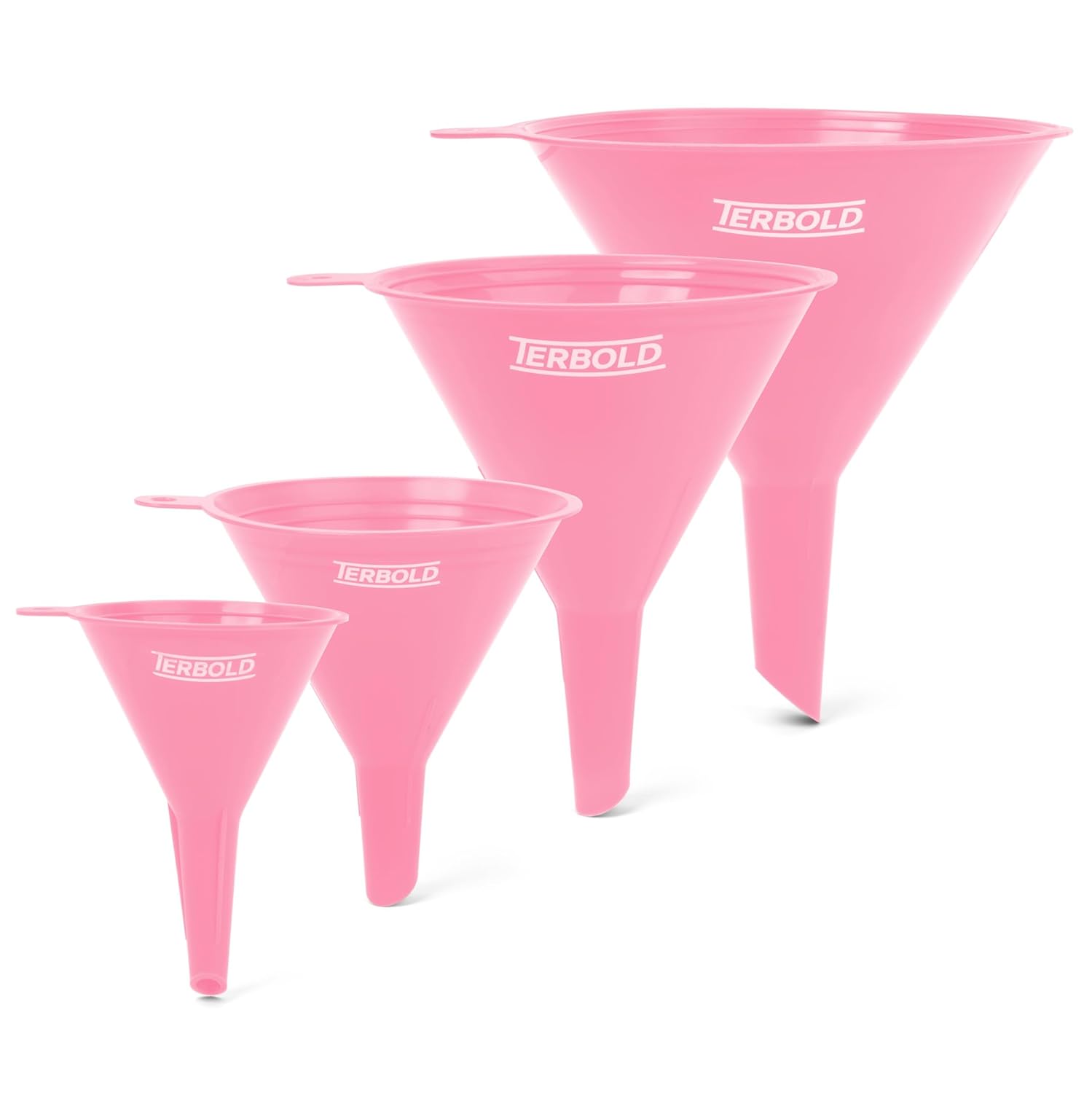 4pc Funnel Nesting Set in BPA Free Plastic for Kitchen Cooking, Car Oil, Home, or Lab Use (Pink)