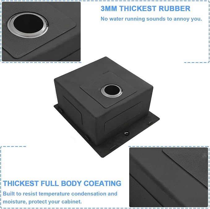 - Anti-Noise And Anti-Condensation: The topmount bar sink is well insulated with sound absorbing pads and heavy-duty acoustic coating on the bottom and all four sides, so when water from the faucet hits the sink there's no noise