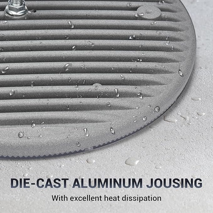 - 【Durable/Long Service Time】This UFO LED high bay light adopted high quality non-flickering driver ensure it over 50,000hours lifespan.It comes with an die-casting aluminum shell which features great thermal conductivity, these make the light durable and excellent heat dissipation.for workshops, barn, gymnasiums, factories, exhibition halls, shopping malls, supermarkets, storage yards, basements and any other large commercial and industrial places