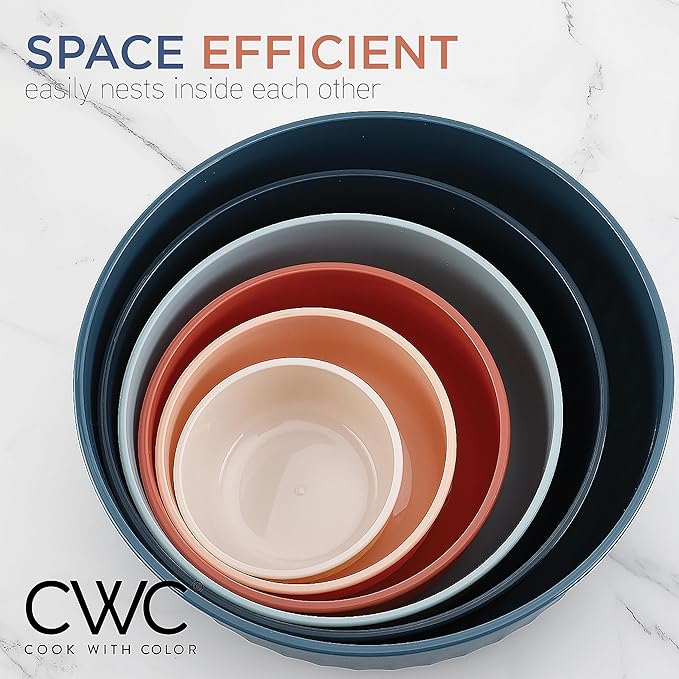 - Cook with Color 12 piece plastic mixing bowl set - non slip bowls with lids; easy to clean, sturdy mixing bowls.