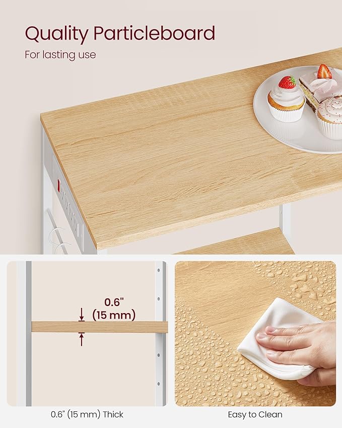 VASAGLE Baker's Rack, Coffee Bar Stand with Charging Station, Storage Shelves, Pull-Out Wire Basket, Table for Microwave, Kitchen, Oak Beige UKKS036Y09, 15.7 x 35.4 x 35.6 Inches