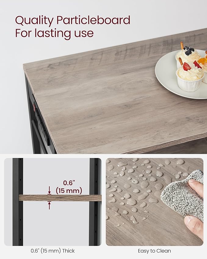 - [Stylish and Sturdy] With greige particleboard and an ink black steel frame, this coffee bar table station is not only aesthetically appealing but also sturdy, boasting a total static load capacity of 400 lb