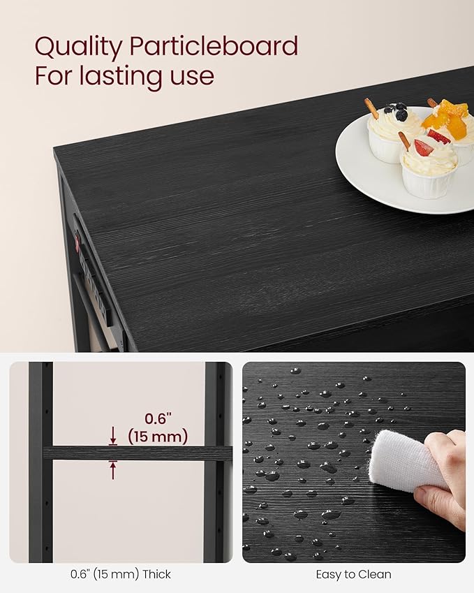 - [Stylish and Sturdy] With charcoal gray particleboard and an ink black steel frame, this coffee bar table station is not only aesthetically appealing but also sturdy, boasting a total static load capacity of 400 lb