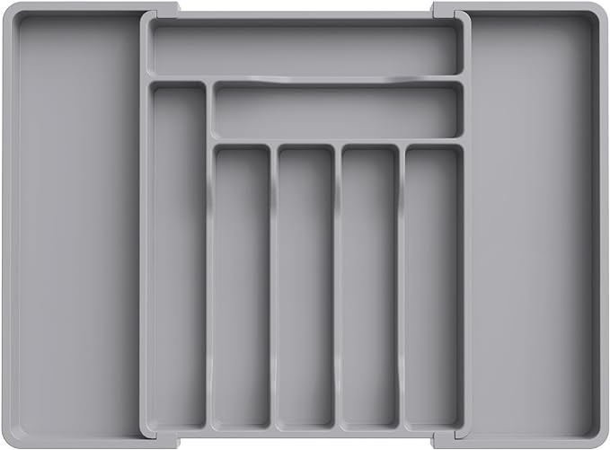 - Premium Construction: The utensil organizer for kitchen drawers is made of BPA-free PP material, ensuring its safety with all types of utensils, silverware and flatware. It has a solid bottom panel with sturdy dividers, keeping your silverware in place.