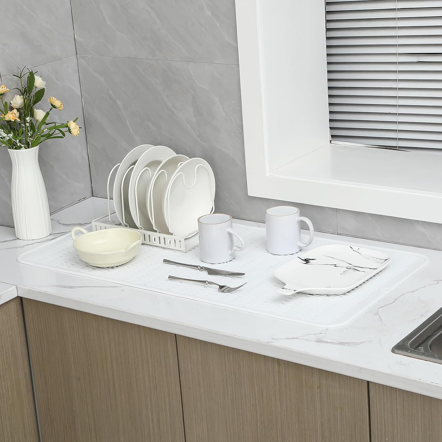 Silicone Dish Drying Mat for Multiple Usage,Easy clean,Eco-friendly,Heat-resistant Silicone Mat for Kitchen Counter or Sink,Refrigerator or Drawer Liner White 5XL 36inches x 18inches