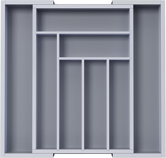 Pipishell Bamboo Expandable Drawer Organizer for Utensils Holder, Adjustable Cutlery Tray, Wood Drawer Dividers Organizer for Silverware, Flatware, Knives in Kitchen, Bedroom, Living Room(M-Grey)