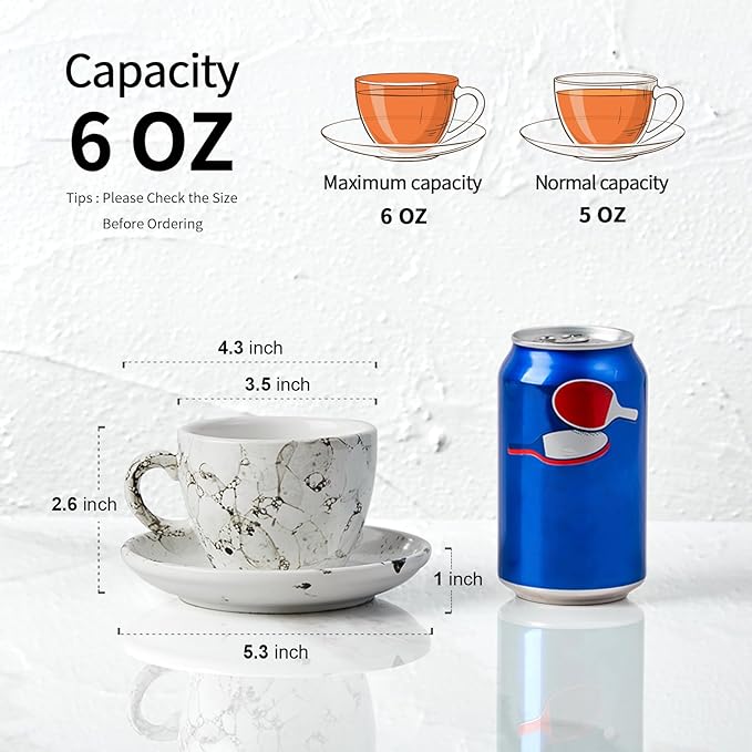 - 【The Elegant Gift】The marble porcelain mini coffee cups with saucers were beautifully and safely Gift box packed.It is a decent gift for your friends and family on Housewarming,Wedding party,Christmas.Any cafes, restaurants, and exquisite decorations are inseparable from it.