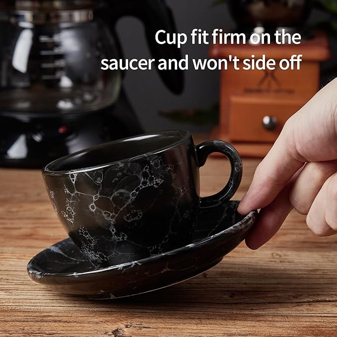 - 【The Elegant Gift】The marble porcelain mini coffee cups with saucers were beautifully and safely Gift box packed.It is a decent gift for your friends and family on Housewarming,Wedding party,Christmas.Any cafes, restaurants, and exquisite decorations are inseparable from it.