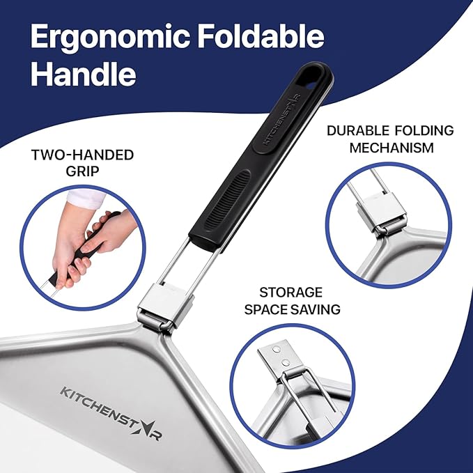 - Space-Saving Design: Our folding pizza peel features a foldable ergonomic handle, making it incredibly easy to store in any kitchen