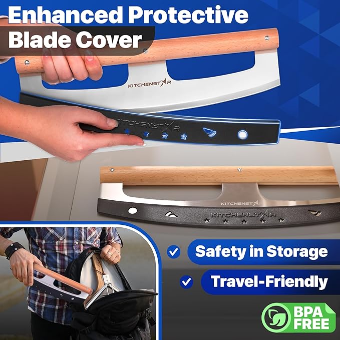 - Safety First: Your safety is paramount. That's why our pizza knife comes with a protective blade cover. Safely store your cutter when not in use, knowing that the sharp blade is securely covered.