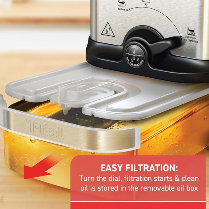 - Ultra easy cleaning: Our electric deep fryer with basket and lid comes with cooking basket, bowl, lid and oil box; experience the convenience of professional deep-frying at home with the T-Fal EZ Clean Compact