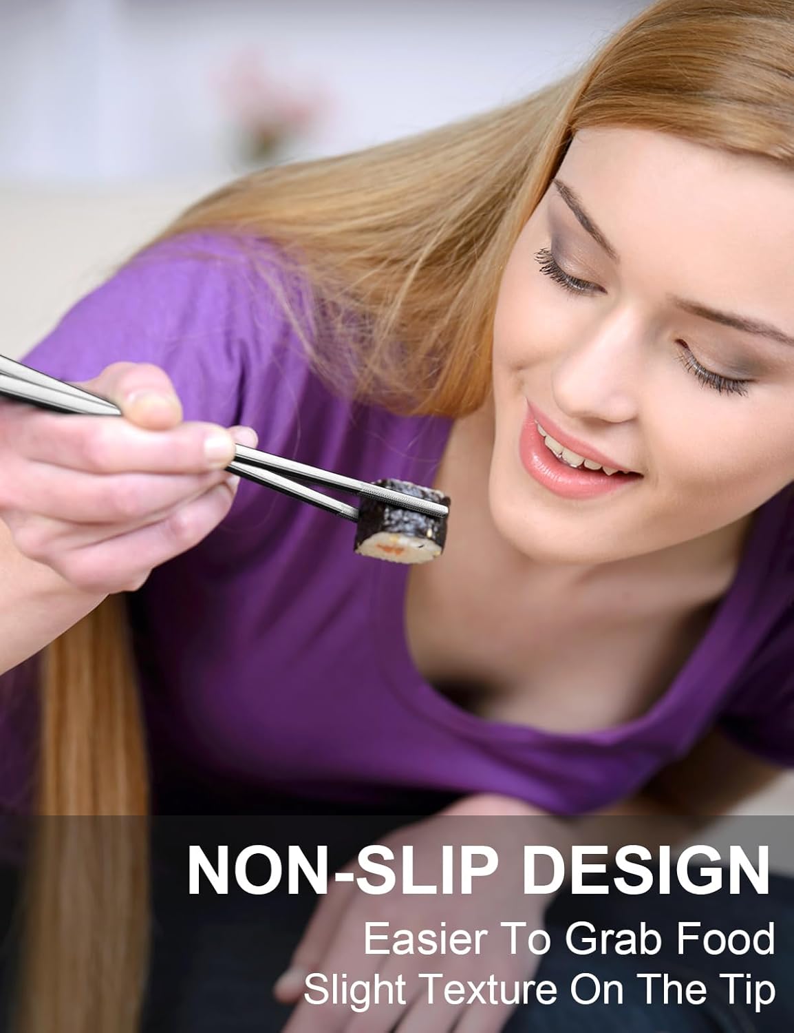 - Non-slip design: The laser etching on the chopstick tip, easier to grab food. Square design and light weight, comfortable to hold and less rolling. Easy to use for beginners too