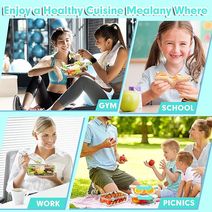 - SAFE & PORTABLE: Compared to ordinary plastic meal prep containers, our glass meal prep containers are non-toxic and long-lasting, wonโt absorb food flavors, or stains, and make them easy to clean. Perfect sizes and shapes are perfect for various occasions and events